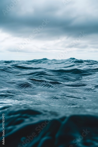 Fototapeta premium Macro shot of the rippling ocean surface under an overcast sky AI generated...
