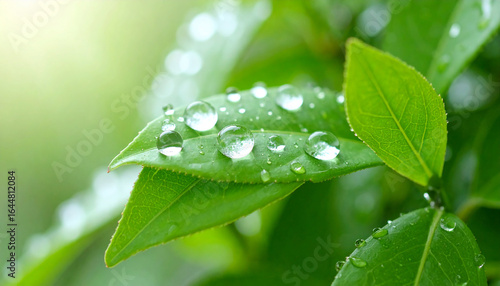 Fototapeta premium Macro Shot of Water Droplets on Vibrant Green Leaves