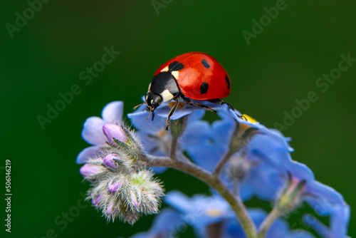 © blackdiamond67, Fototapeta premium Macro shots, Beautiful nature scene. Beautiful ladybug on leaf defocused background