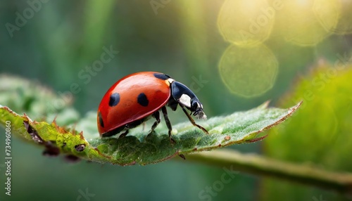 Fototapeta premium Macro shots, Beautiful nature scene. Beautiful ladybug on leaf defocused...