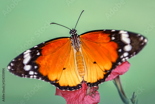 Fototapeta premium Macro shots, Beautiful nature scene. Closeup beautiful butterfly sitting on the flower in a summer garden.