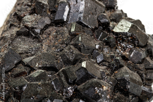 © Minakryn Ruslan , Fototapeta premium Macro stone mineral Melanite on a white background