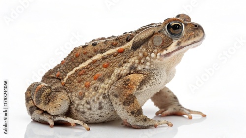 © Alper, Fototapeta premium Macro studio portrait of an Oak Toad (Anaxyrus quercicus) with a distinctive dorsal stripe, isolated on white.