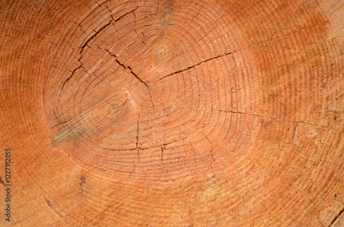 Fototapeta premium Macro texture of fresh cut tree rings wood