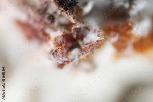 © taffpixture, Obraz premium Macro texture of mycelium fungus growth on food waste