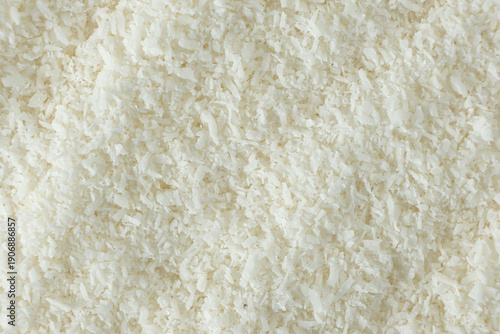 Fototapeta premium Macro Texture White Dried Coconut Flakes Top View