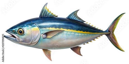 Fototapeta premium Macro Tuna Fish Isolated White Background AI Photo