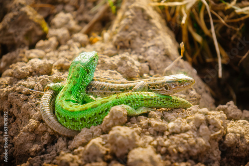 © ILYAS, Fototapeta premium macro two lizard on the ground