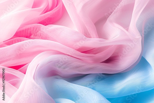 © Achirawee, Fototapeta premium Macro view of a lightweight voile fabric in a pastel shade, with space for text overlay.