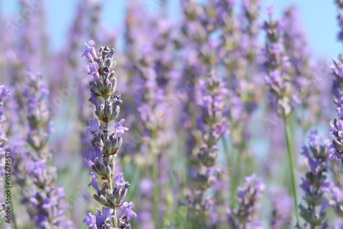 © Olesia, Obraz premium Macro view of blooming lavender flowers with soft focus background