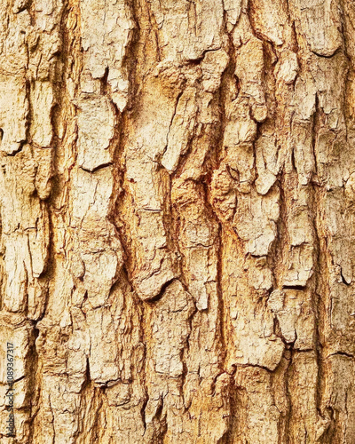 © Taras Vykhopen, Obraz premium Macro view of tree bark revealing intricate textures and natural patterns in warm tones