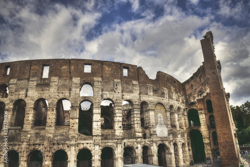 © belyay, Fototapeta premium Mad clouds and Colisseum old building in Rome city, Italy