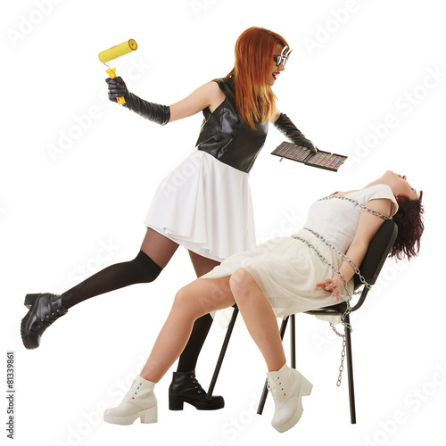 © Wisky, Naklejka premium Mad fashion. Crazy makeup artist and chained model