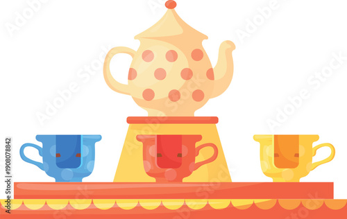Naklejka premium Mad tea cups ride. Cartoon theme park attraction
