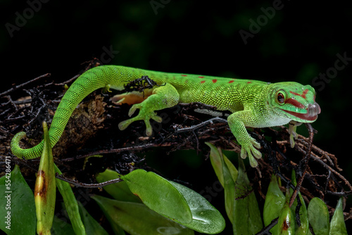 Fototapeta premium Madagascar Day Gecko (Phelsuma madagascariensis madagascariensis) on tree...