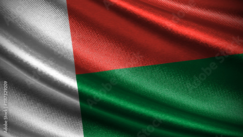 © Cetin, Obraz premium Madagascar flag with realistic silky wave texture