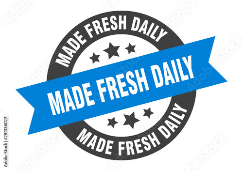 Fototapeta premium made fresh daily sign. made fresh daily blue-black round ribbon sticker