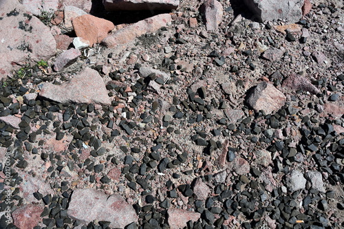 Naklejka premium Made from pebble gravel stones different shape as floor texture background. Small rocks background texture, abstract stone texture pebbles.