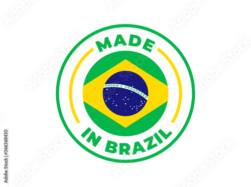 © Torpix, Fototapeta premium "Made in Brazil" vector icon. Illustration with transparency, which can be filled with white, or used against any background. Country flag encircled with text and lines.