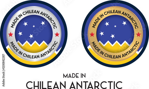 © Hamza, Naklejka premium Made in Chilean Antarctic. Premium labels, stickers, pointer, badge and symbol of Chilean Antarctic flag icon. Collection vector illustration