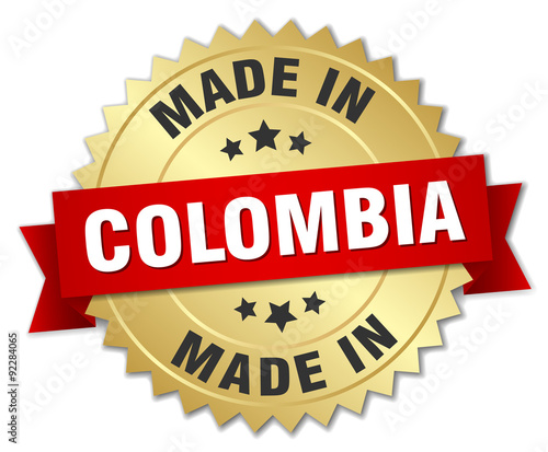 © Aquir, Obraz premium made in Colombia gold badge with red ribbon