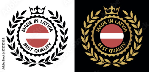 Obraz premium made in Latvia vector stamp. bagge with Latvia flag