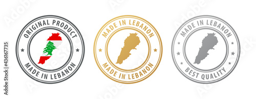 Fototapeta premium Made in Lebanon - set of stamps with map and flag. Best quality. Original...