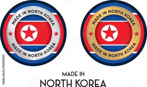 © Hamza, Naklejka premium Made in North Korea. Premium labels, stickers, pointer, badge and symbol of North Korea flag icon. Collection vector illustration