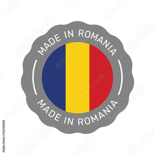 © Tsvetina, Fototapeta premium Made in Romania colorful vector badge. Label sticker with Romanian flag.