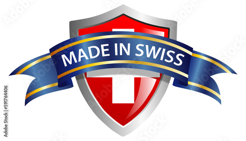 Fototapeta premium Made in Swiss. Isolated shield with text.