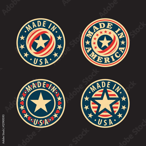© Robert Voight, Naklejka premium Made in USA (America) – set of round labels, badges, stickers. Isolated on black.