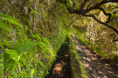 © Lukasz Sokol, Fototapeta premium Madeira levada green landscape with waterfall