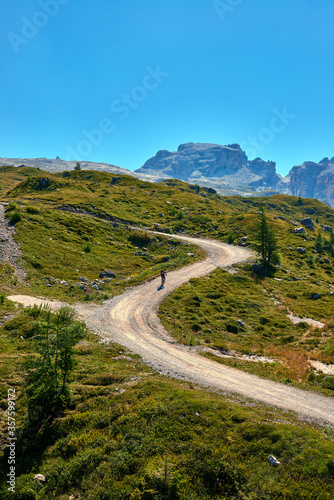© DannyIacob, Fototapeta premium Madonna di Campiglio (Tn), Italy, Cyclist climbing in the mountains