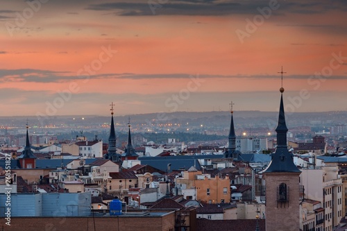 © rabbit75_fot, Naklejka premium Madrid rooftop sunset view