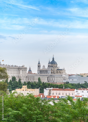 Naklejka premium Madrid Skyline with the Royal Palace and the Almudena Cathedral