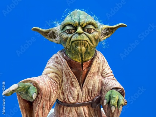 © Fernando, Naklejka premium Madrid, Spain; 01-03-2024: Life-size figure of the iconic character from the Star Wars movie saga Yoda, Grand Master of the Jedi Order