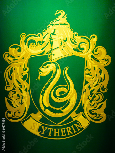 Naklejka premium MADRID, SPAIN - NOV 22, 2017: Slytherin symbol, Wizarding world of Harry Poter experience in Madrid, Spain