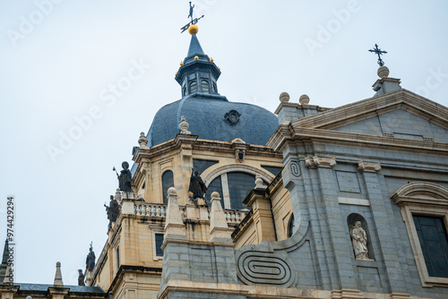 © 江乐 陈, Fototapeta premium Madrid, Spain - old Royal Palace building and statues
