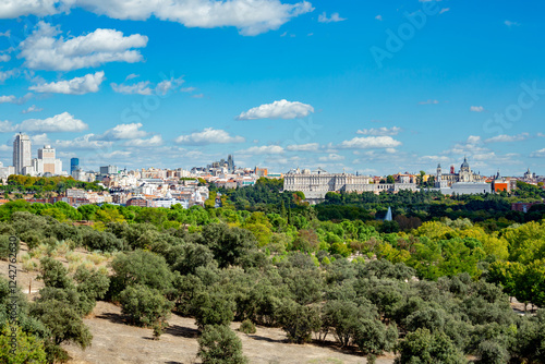 © ttinu, Fototapeta premium Madrid view from La Casa de Campo Park, Spain