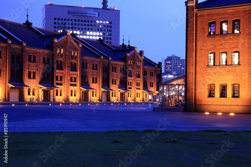 © baphotte, Naklejka premium Magazyn z czerwonej cegły o zmierzchu