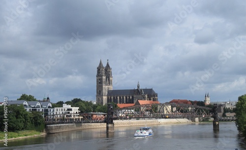© holger.l.berlin, Obraz premium Magdeburg, Stadtpanorama mit Dom, Elbe und Hubbrücke
