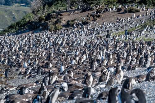Naklejka premium Magellanic Penguin (Spheniscus magellanicus) at colony, Land of Fire (Tierra...