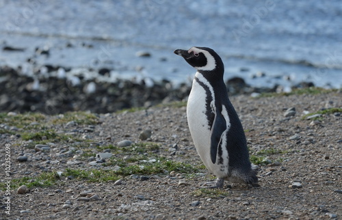 © b201735, Naklejka premium Magellanic Penguins at the penguin sanctuary on Magdalena Island in the Strait of Magellan near Punta Arenas in southern Chile.