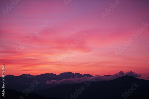 © vxnaghiyev, Fototapeta premium Magenta twilight behind the hills