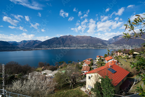 © Buebelina, Fototapeta premium Maggiore lake view over Gambarogno village in spring