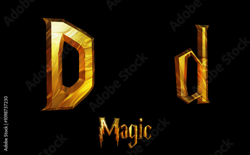 © SIBPOP, Naklejka premium Magic Alphabet golden font letters 3 D render Illustration