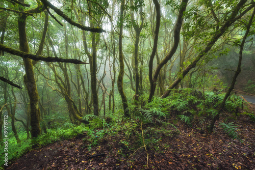 Obraz premium Magic Laurisilva rain forest in Anaga mountains, Tenerife, Canary islands,...