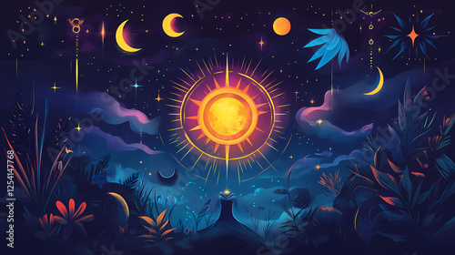 Fototapeta premium Magic ritual with esoteric fortune and esoterconcept. Eclipse Prophecies. Illustration