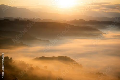 Fototapeta premium Magic sunrise in a Carpathian mountain valley