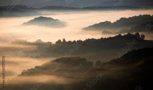 Fototapeta premium Magic sunrise in a Carpathian mountain valley